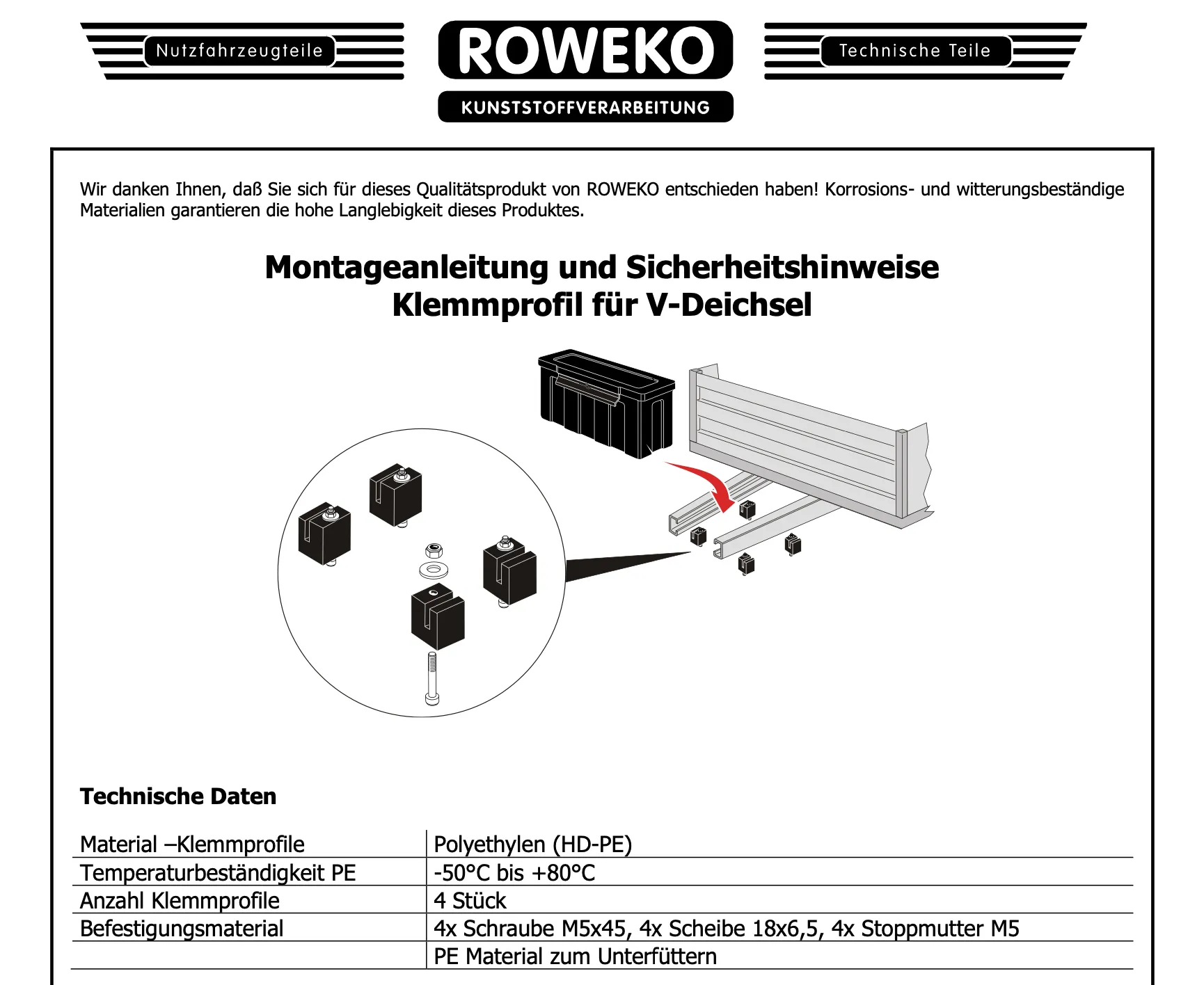 Klemmprofil für V-Deichsel